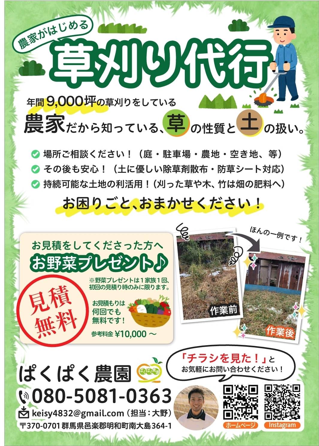 ぱくぱく農園が庭・駐車場・農地の雑草管理をお手伝いします